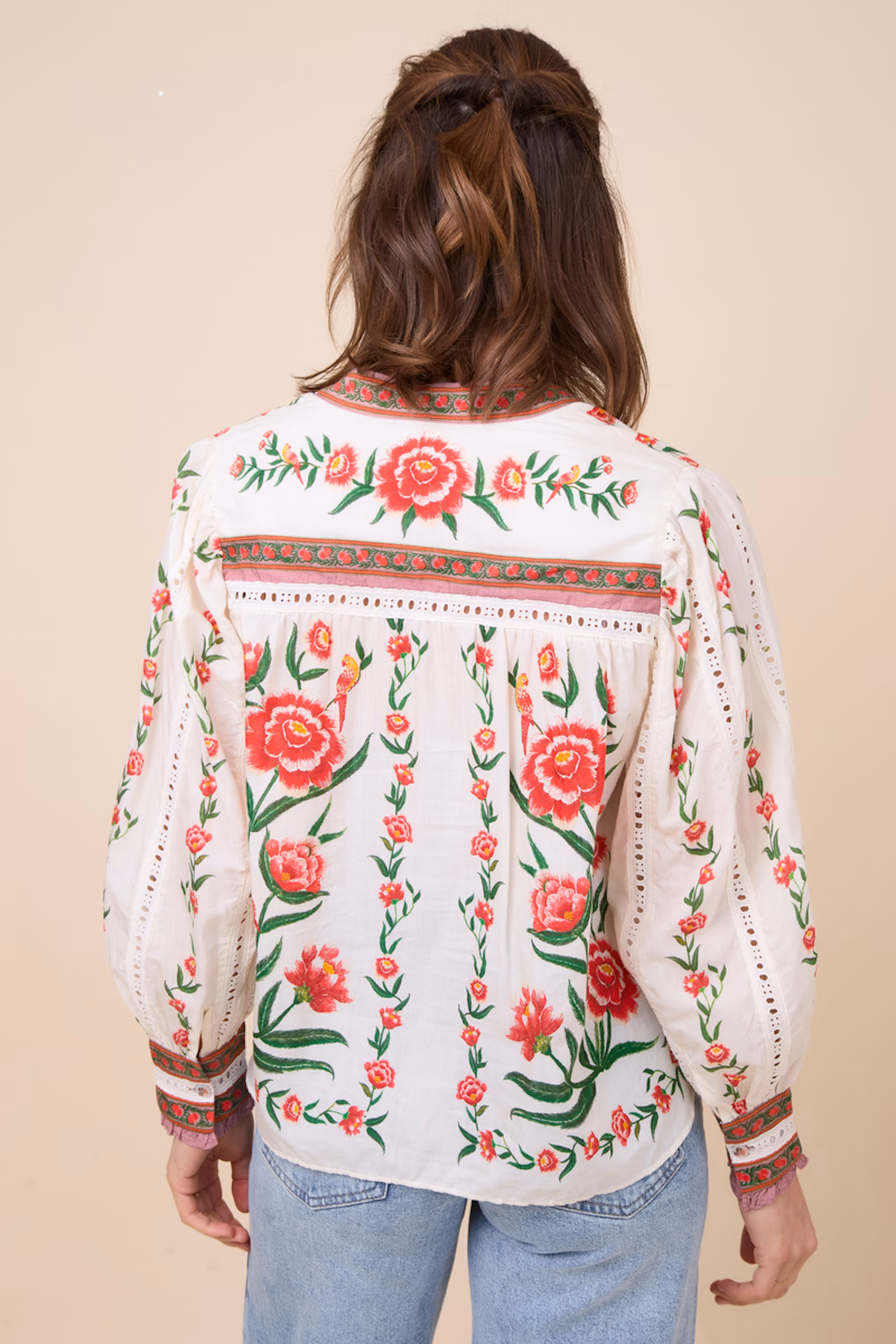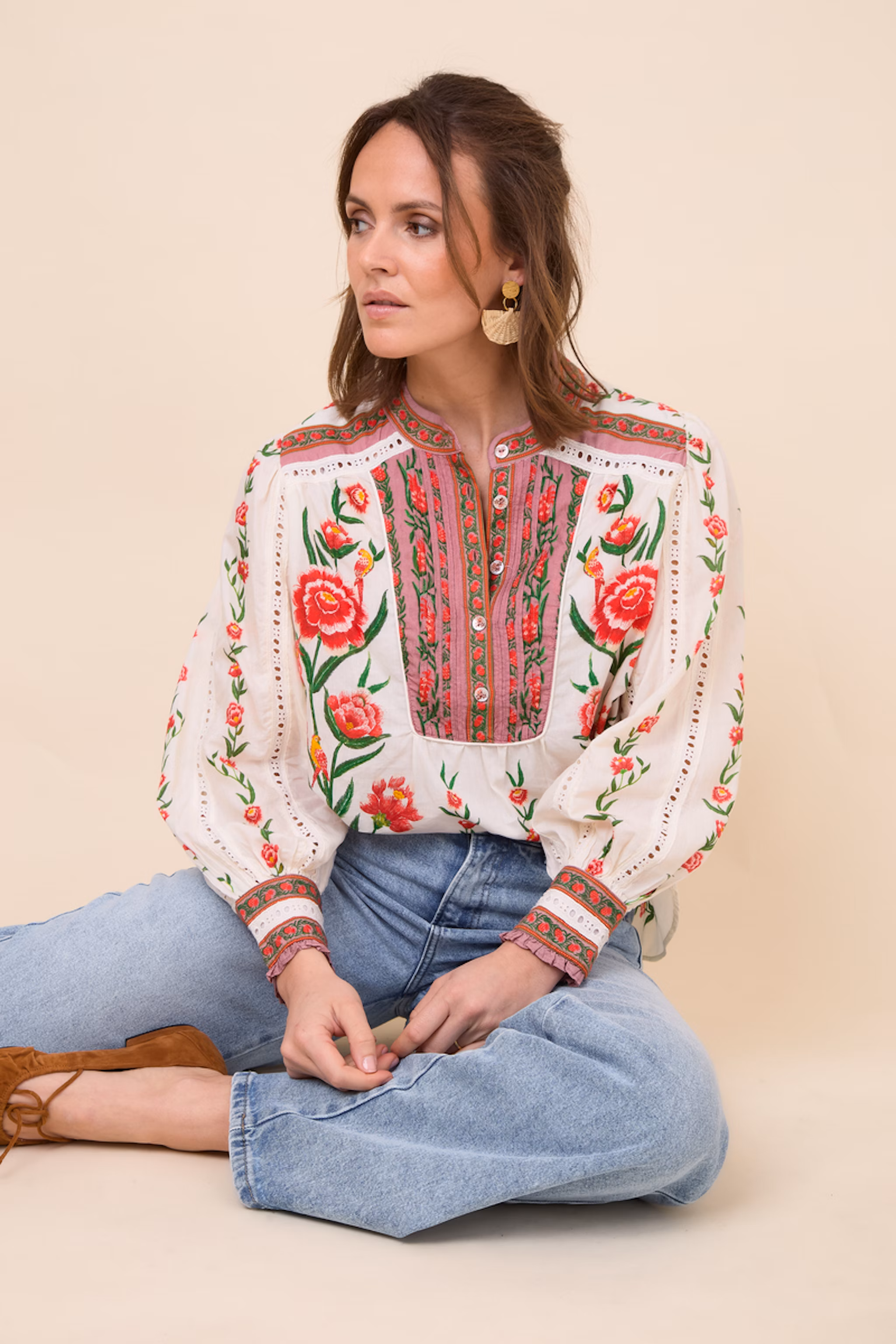 Avec cette blouse colorée de FARM RIO, capturez l'énergie vibrante des journées estivales. Associez-la à un jean taille haute et des sandales en cuir.