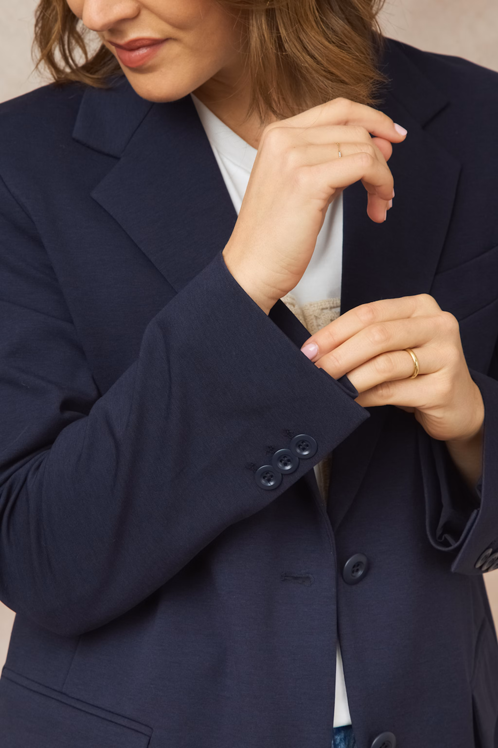 Optez pour un look chic en associant ce blazer à un jean droit et des escarpins. Idéal pour toutes les occasions.• Blazer droit en doux jersey de coton lyocell