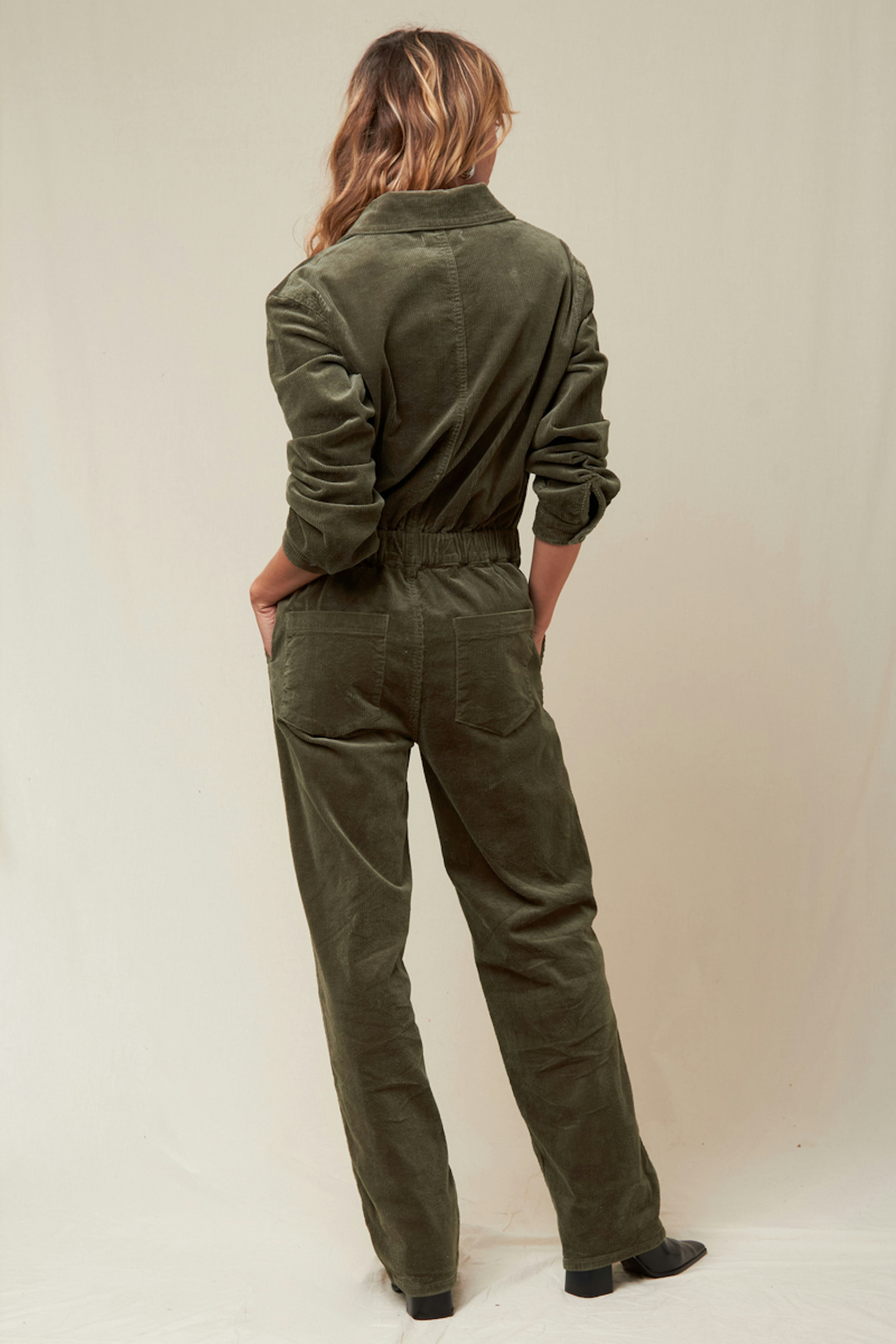 Kombiniere diesen eleganten Jumpsuit mit Lederstiefeletten und einer strukturierten Tasche für einen eleganten und unwiderstehlichen Winterlook. • Baumwoll-Jumpsuit • Enganliegende Passform • Lange Ärmel • Elastischer Bund • Zwei Brusttaschen