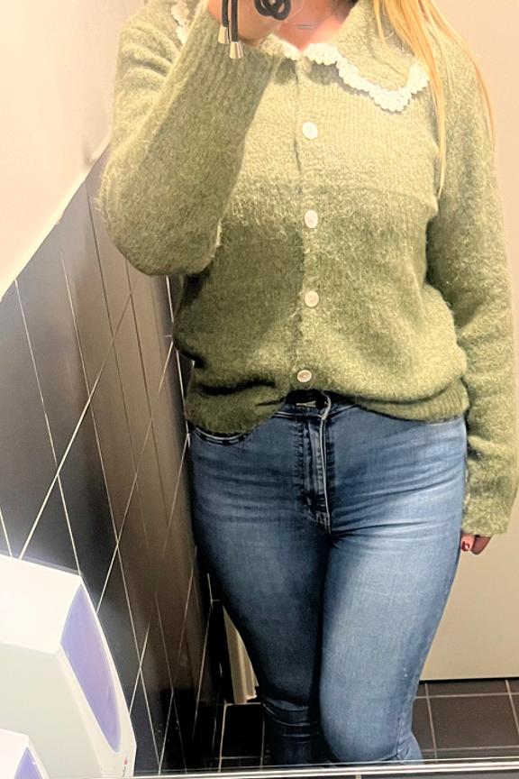 Trage ihn mit einer hochgeschnittenen Jeans und Stiefeletten für einen gemütlichen und eleganten Winterlook. • Weiche Weste aus Wolle • Figurbetonte Passform • Lange Ärmel • Kragen mit gestickten Details • Perlmuttknöpfe