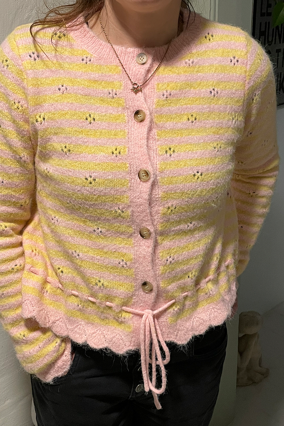 Bring frischen Wind in deine Sommeroutfits mit dieser fröhlichen Weste! Kombiniere sie mit einer hellen Jeans und Sandalen für einen lässigen, frischen Look. • Gestreifte Weste • Knopfverschluss • Lange Ärmel • Kordelzug in der Taille • Wellenförmige Abschlüsse