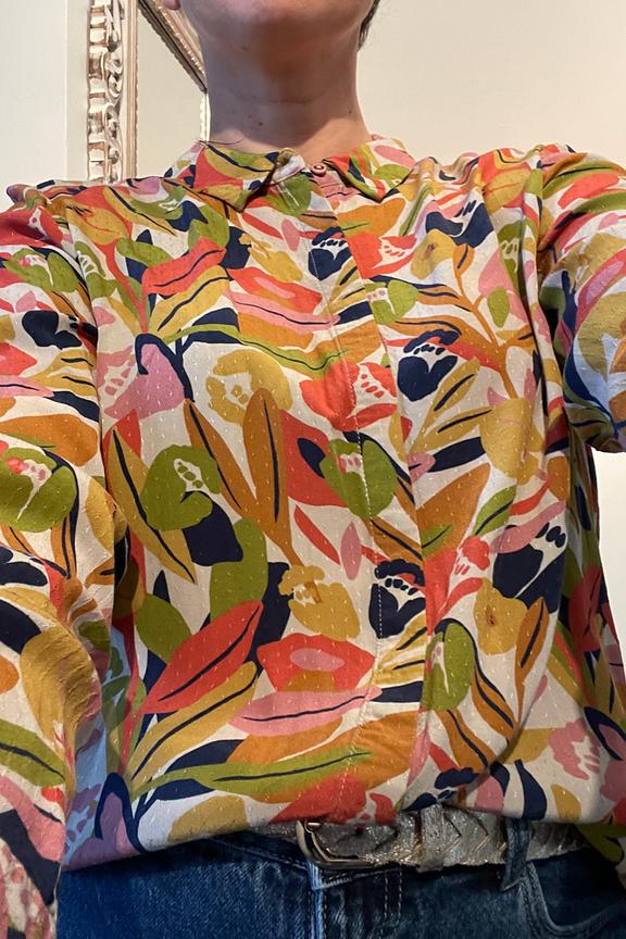 - Bedrucktes Langarmshirt - Viskosegewebe mit mehrfarbigem Druck auf rohweiรem Grund - Knopfleiste