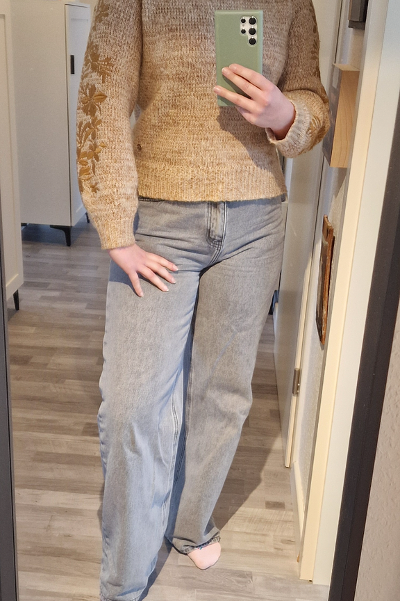 "Die Wide-Leg-Jeans in Größe 38 hat mir perfekt gepasst. Endlich mal eine Hose, bei der auch die Länge für meine Größe (1,79) stimmt. Sie sitzt gut in Taille und Hüfte und hat einen schön weiten, geraden Schnitt. Eine tolle Jeans, die ich gerne trage. Und mir wieder ausborgen werde."
