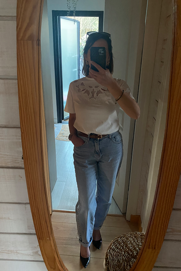 Kombiniere diese jeans mit ledermokassins und einem leichten pullover für einen eleganten und entspannten look. • gerade schnitt • mittlere taille • knöchellang • leichte auswaschung • umgeschlagener saum