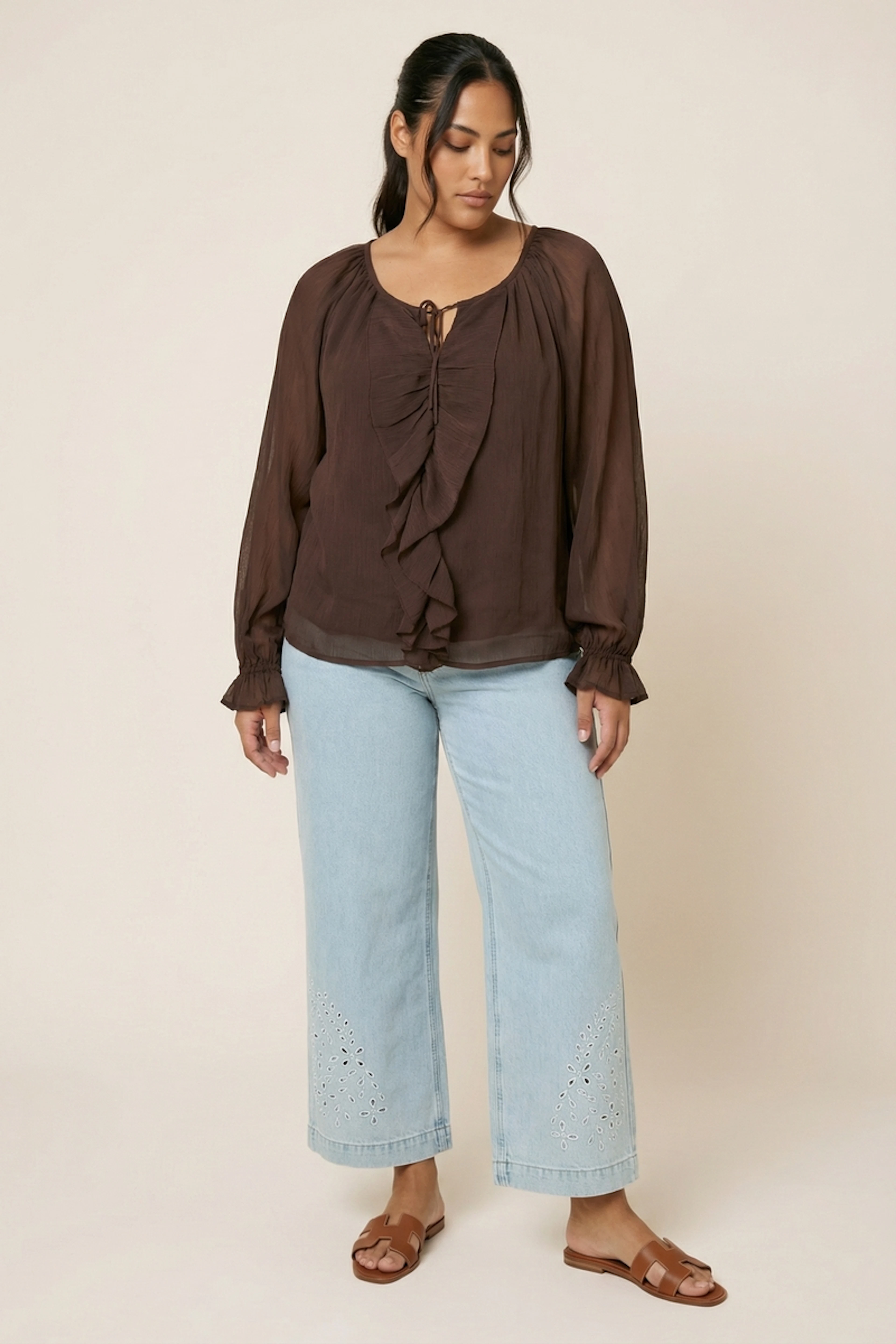 Wähle einen lässigen Look, indem du diese Jeans mit einem weißen T-Shirt und bunten Sneakers kombinierst. Perfekt für jede Jahreszeit. • Weite Jeans • Lockere Passform • Hohe Taille • Durchbrochene Details an den Säumen • Helle Waschung