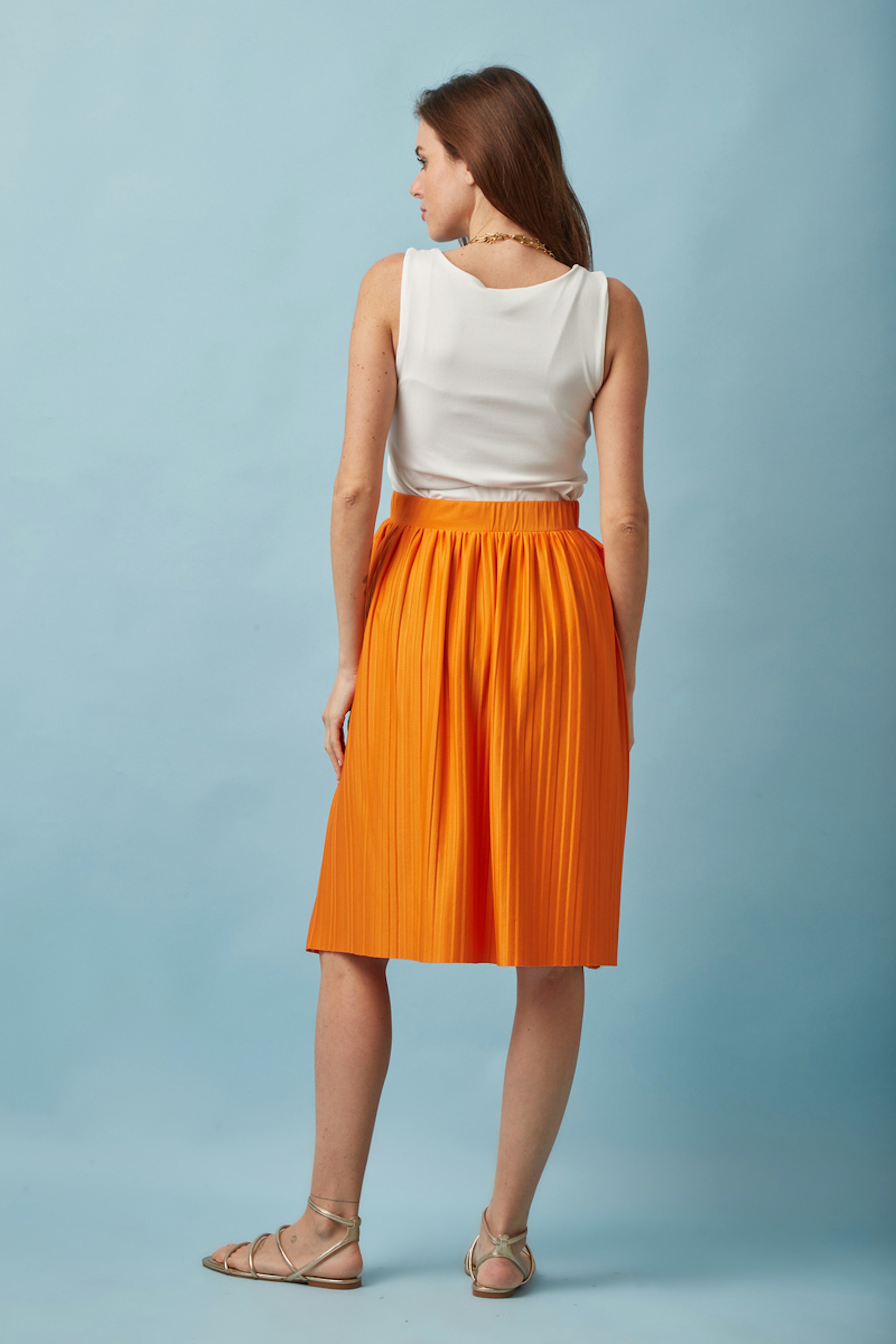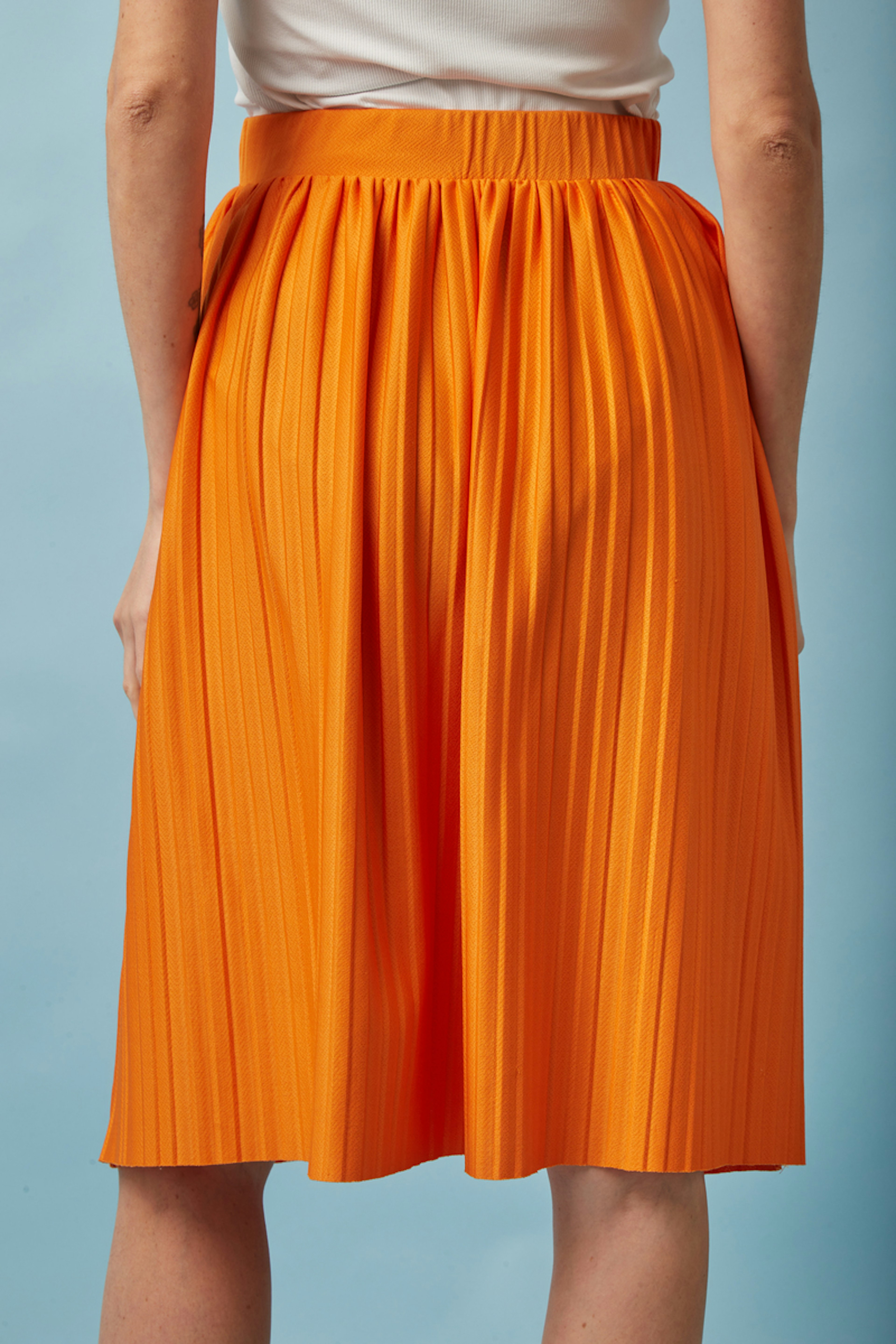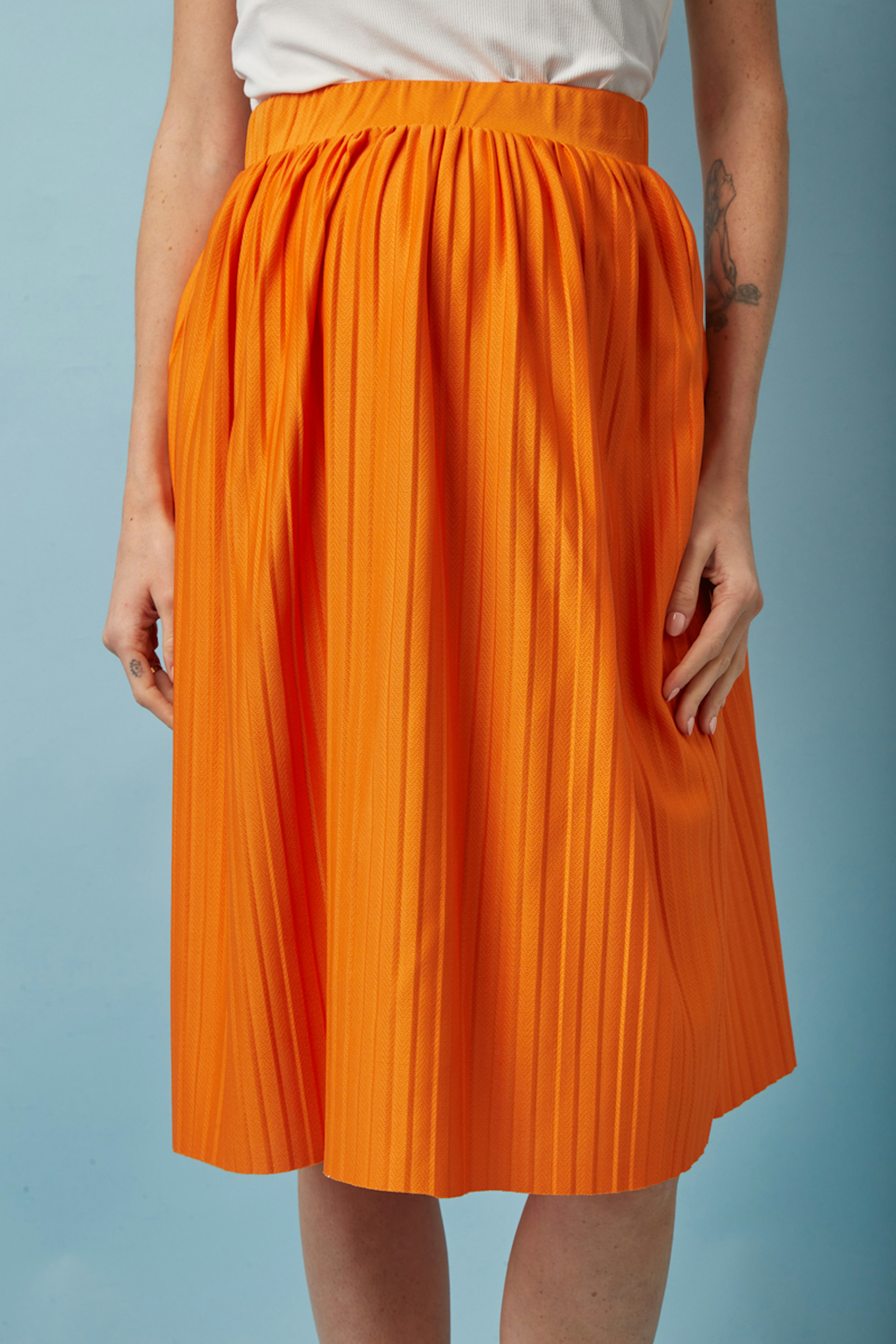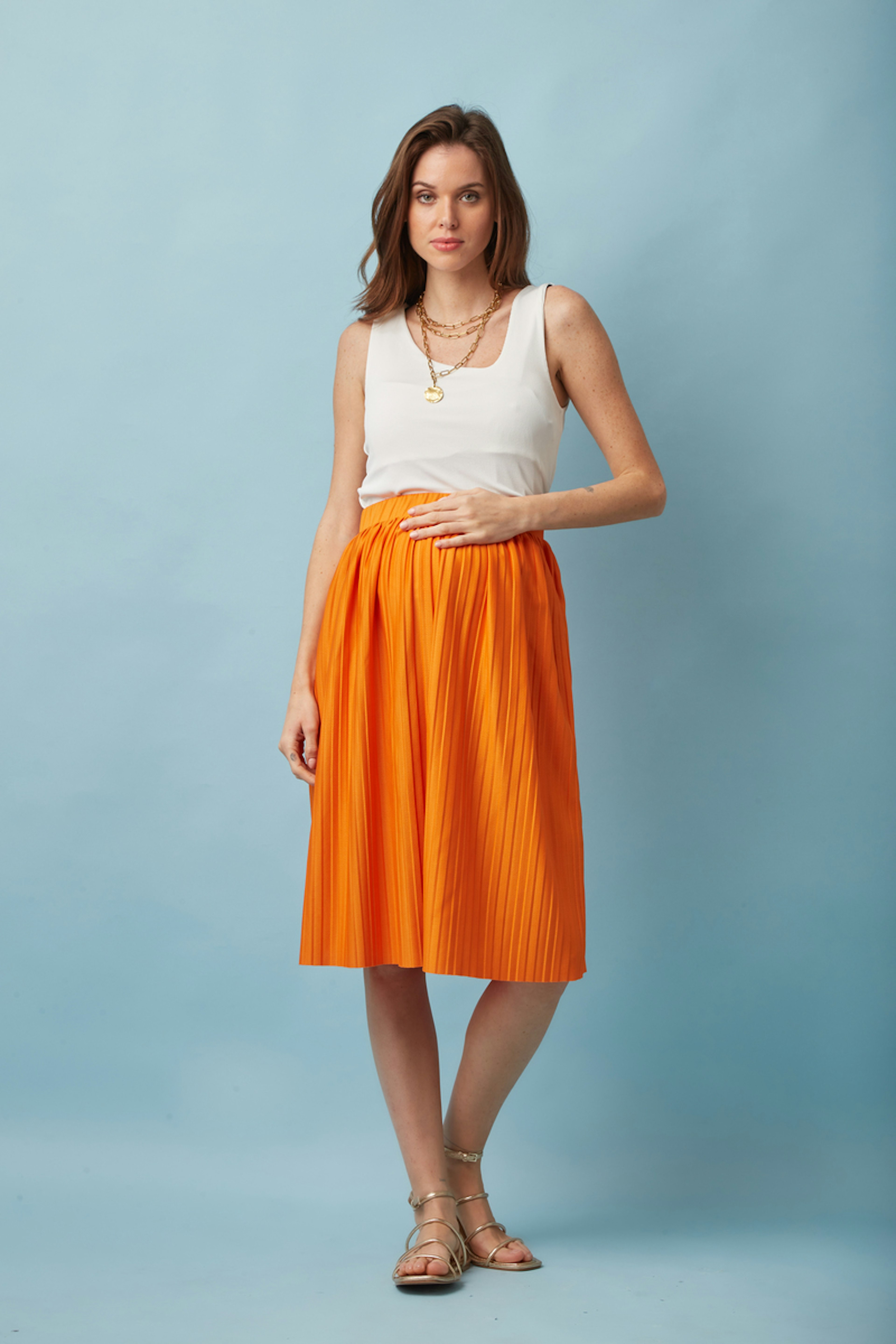 Veredeln Sie Ihren Sommer mit diesem prickelnden Umstandsrock, der perfekt zu Ihrer sรผรen Erwartung passt. Mit einem flieรenden Oberteil verspricht er Komfort und Stil. - Umstands-Plissee-Rock - Verstellbarer Gummibund - Wadenlange - Lockerer, flieรender Schnitt - Leuchtendes Orange
