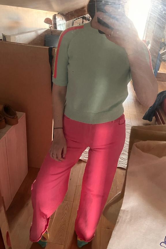 "Ein bisschen kurz, aber toll zu tragen mit hoher Taille. Ich habe es gekauft, weil ich es mochte. Ich habe viele Komplimente beim Tragen bekommen. Gute Qualitรคt."