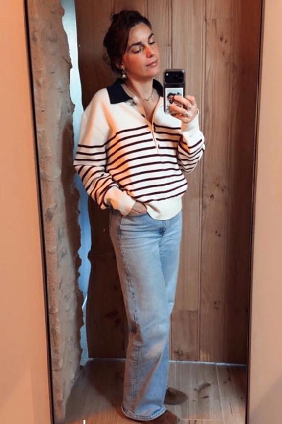 "Nicht schlecht, aber im Mutterschaftsmodus sieht das nicht sehr schmeichelhaft aus. Sieht zu sehr nach Bauch aus und macht ein wenig Obelix mit den Streifen"