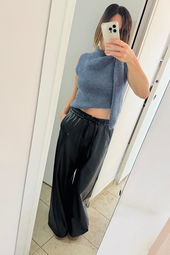Kombiniere diesen pullover mit einer schwarzen lederhose und stiefeln für einen schlichten und winterlichen look. • Ärmelloser Pullover • Stehkragen • Weiches und warmes Material • Bindebänder zur Seite • Perfekt für Layering