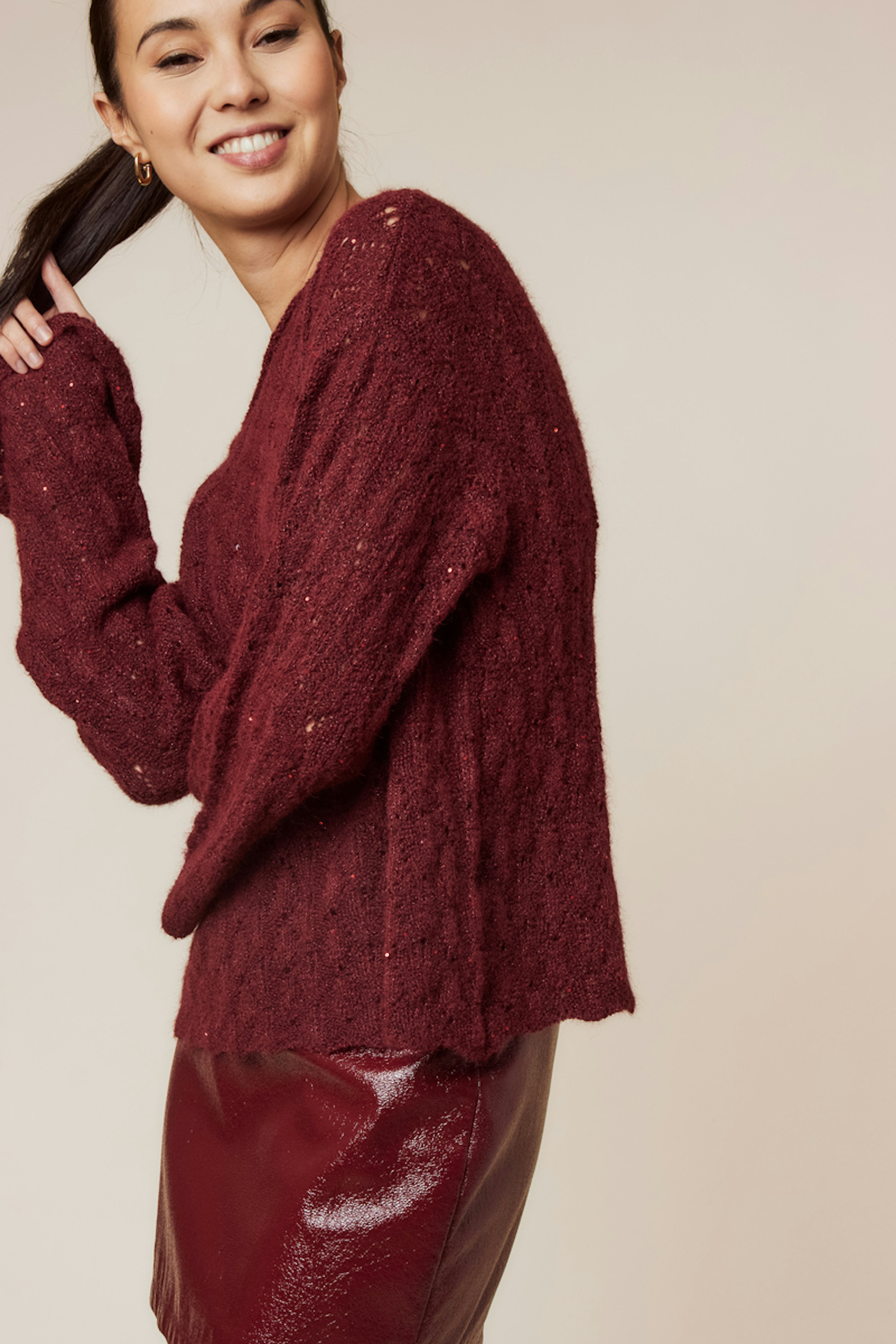 Trage diesen pullover mit einem lederrock und boots fรผr einen schicken Winterlook. โข Pullover aus Wolle und Mohair โข Lockerer und lรคssiger Schnitt โข Lange รrmel โข Runder Ausschnitt โข Leicht strukturiert