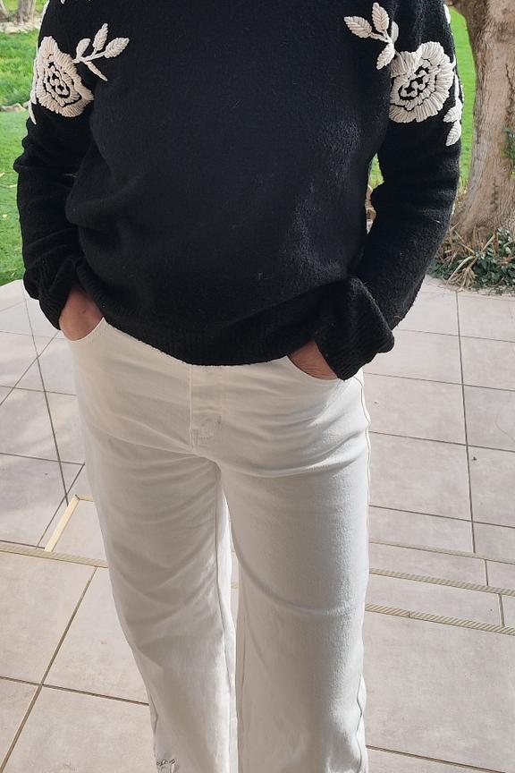 Verfeinere deinen Look mit diesem schicken Pullover, gepaart mit einer weißen Jeans und Stiefeln für eine elegante Ausstrahlung. • Pullover mit Mustern • Klassische Passform • Lange Ärmel • Rundhals-Ausschnitt • Besticktes Blumenmuster