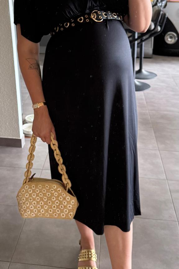 - Langes schwarzes Satin-Kleid - V-Ausschnitt - Kurze รrmel - Bequemer Stretch-Stoff - Maxi-Lรคnge - Kordelzug, Kork-Zwischensohle - Regular Fit