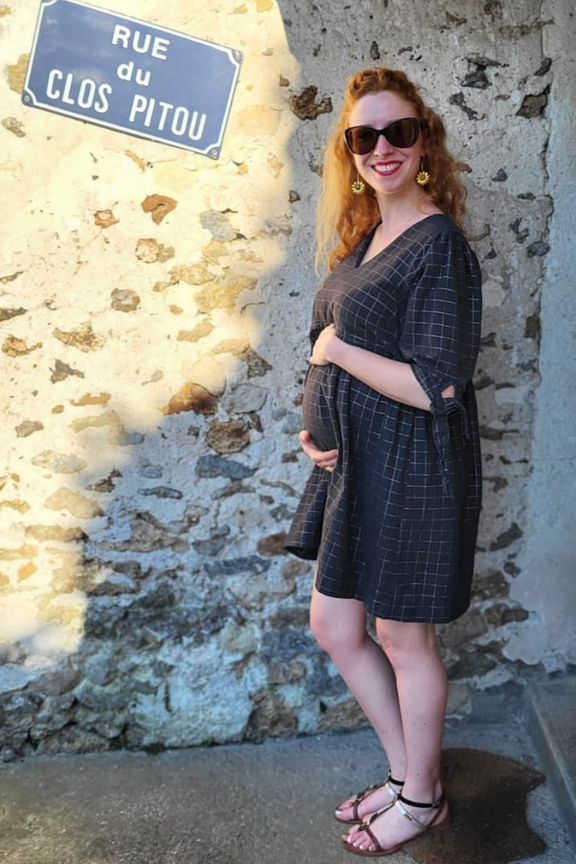 Das kurze Umstandskleid Janis mit seinen goldenen Lurexfรคden wurde fรผr junge Mรผtter entworfen. Der V-Ausschnitt sorgt fรผr ein schรถnes Dekolletรฉ. Das kurze Kleid hat unsichtbare ReiรŸverschlรผsse, die das Stillen erleichtern, und hรผbsche schwarze und goldene Knรถpfe. Janis ist ein Umstandskleid aus 100% GOTS-zertifizierter Bio-Baumwolle, das nach OEKO TEX-STANDARD 100 zertifiziert wurde. Tragen Sie dazu weiรŸe Turnschuhe oder Chelsea Boots. Fรผr einen schickeren Look kรถnnen Sie das Kleid auch mit schwarzen Stiefeletten und Strumpfhosen kombinieren.