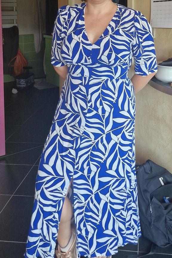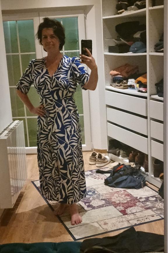 "Ein sehr schรถnes Kleid! Es ist leicht und hat einen schรถnen Ausschnitt. Die Farbe ist sehr modern und sommerlich. Ich mag dieses Kleid sehr. Es ist zu schรถn."