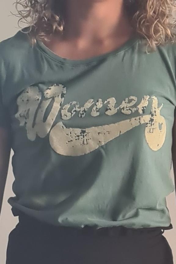 - Toro-Top - T-Shirt aus Bio-Baumwolle mit Women-Print - Grรผnes T-Shirt mit Print mit Used-Effekt in Ecru - Rundhalsausschnitt - Kurze รrmel