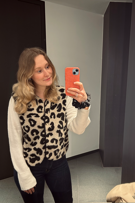 - รrmellose Weste im Sherpa-Stil - Leopardenmuster - Rundhalsausschnitt - Knopfverschluss