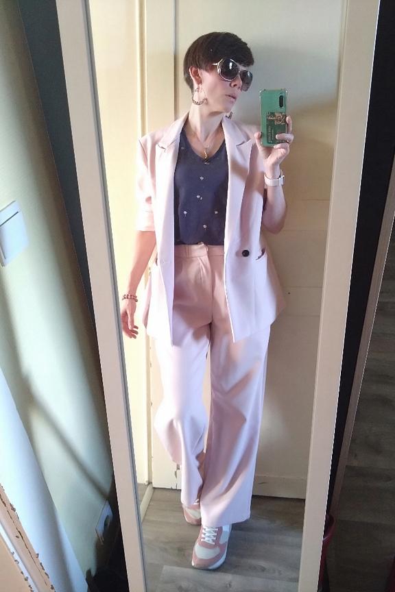 “Pleasant to wear. Thick fabric. 2 flap pockets. Oversized cut, so a bit loose at the shoulder pads. I rented it with the matching pants.”