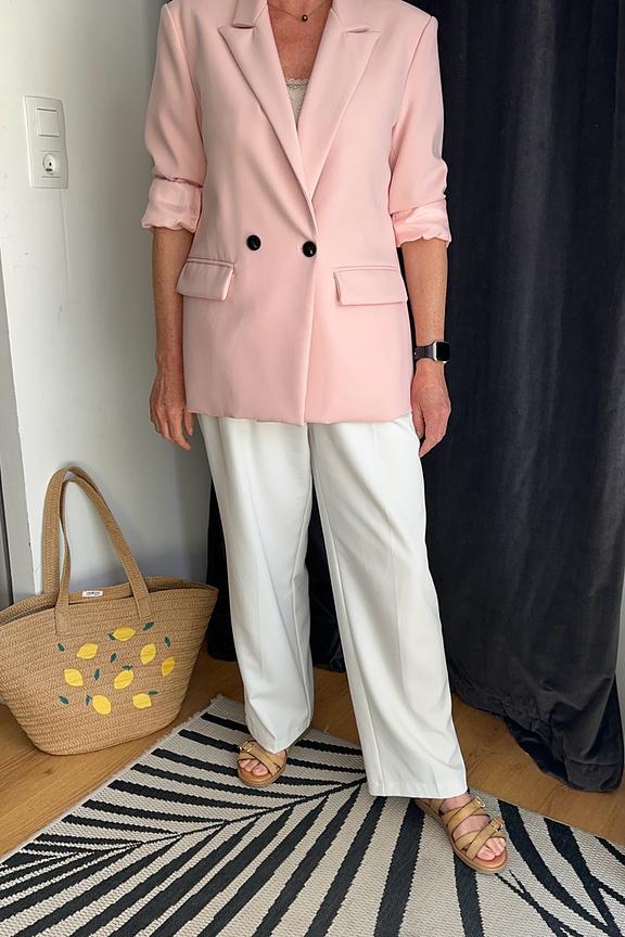 For an elegant look, pair this pink blazer with white pants and nude heels. A perfect choice for workdays or outings in town. • Modern blazer • Straight cut • Long sleeves • Single-button closure • Flap pockets