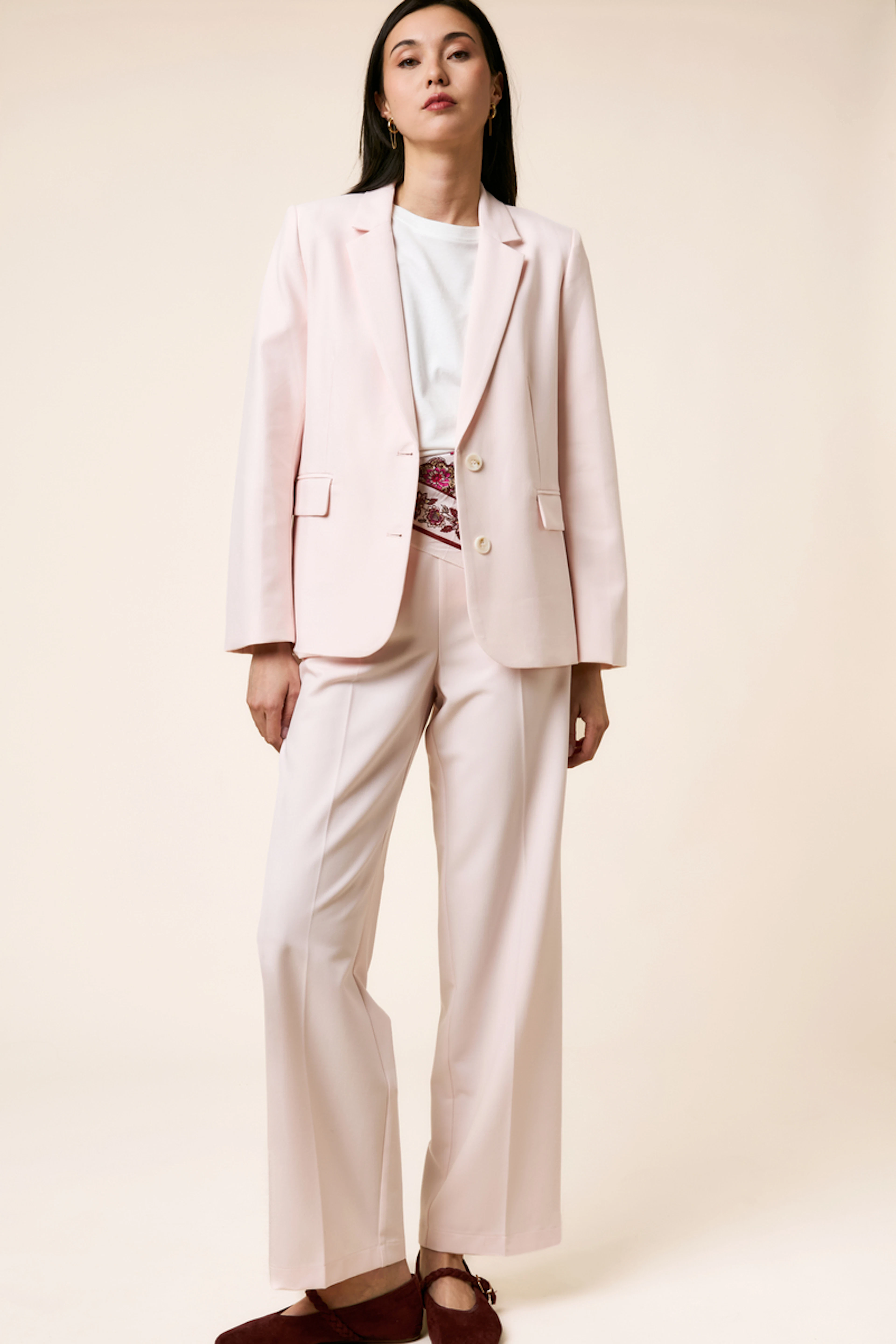 Add a touch of chic to a casual outfit with this blazer by pairing it with a white tee and jeans. Ideal for summer evenings. • Pink blazer • Oversized cut • Long sleeves • Button closure • Flap pockets