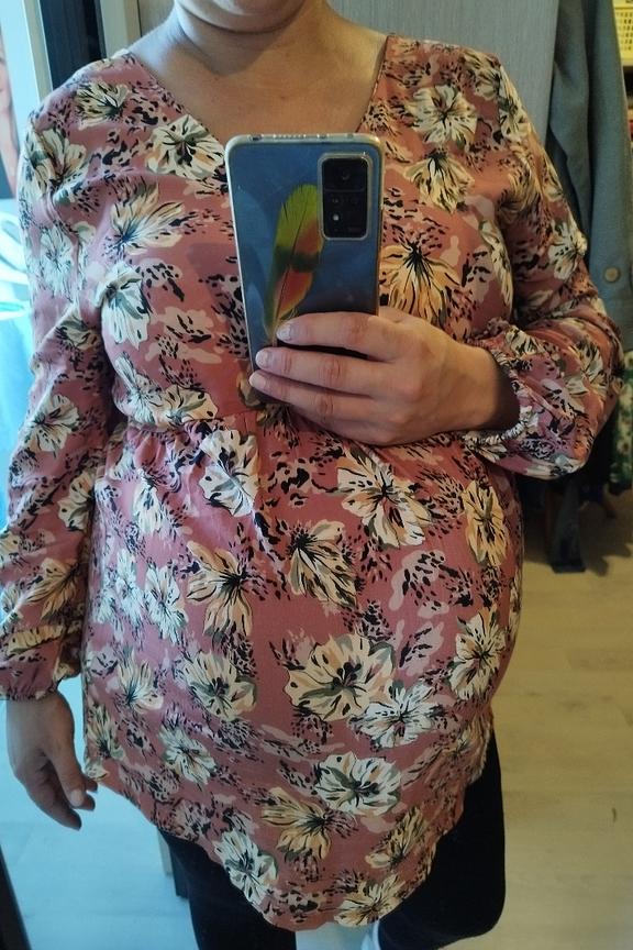 “Pretty pattern, comfortable blouse, with plenty of room for the belly.”