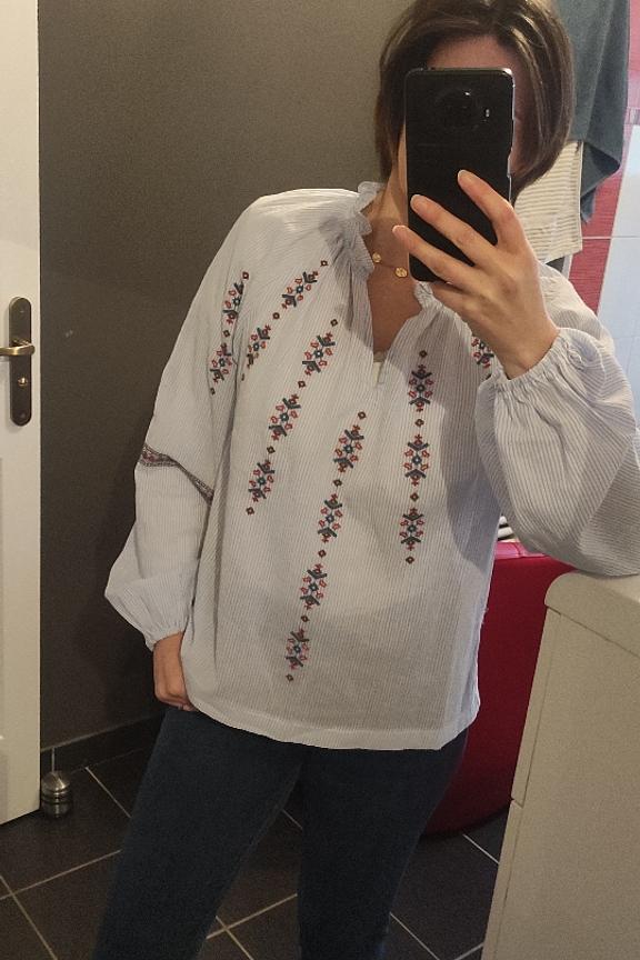 “Beautiful embroidery but transparent fabric. Pleasant blouse to wear”