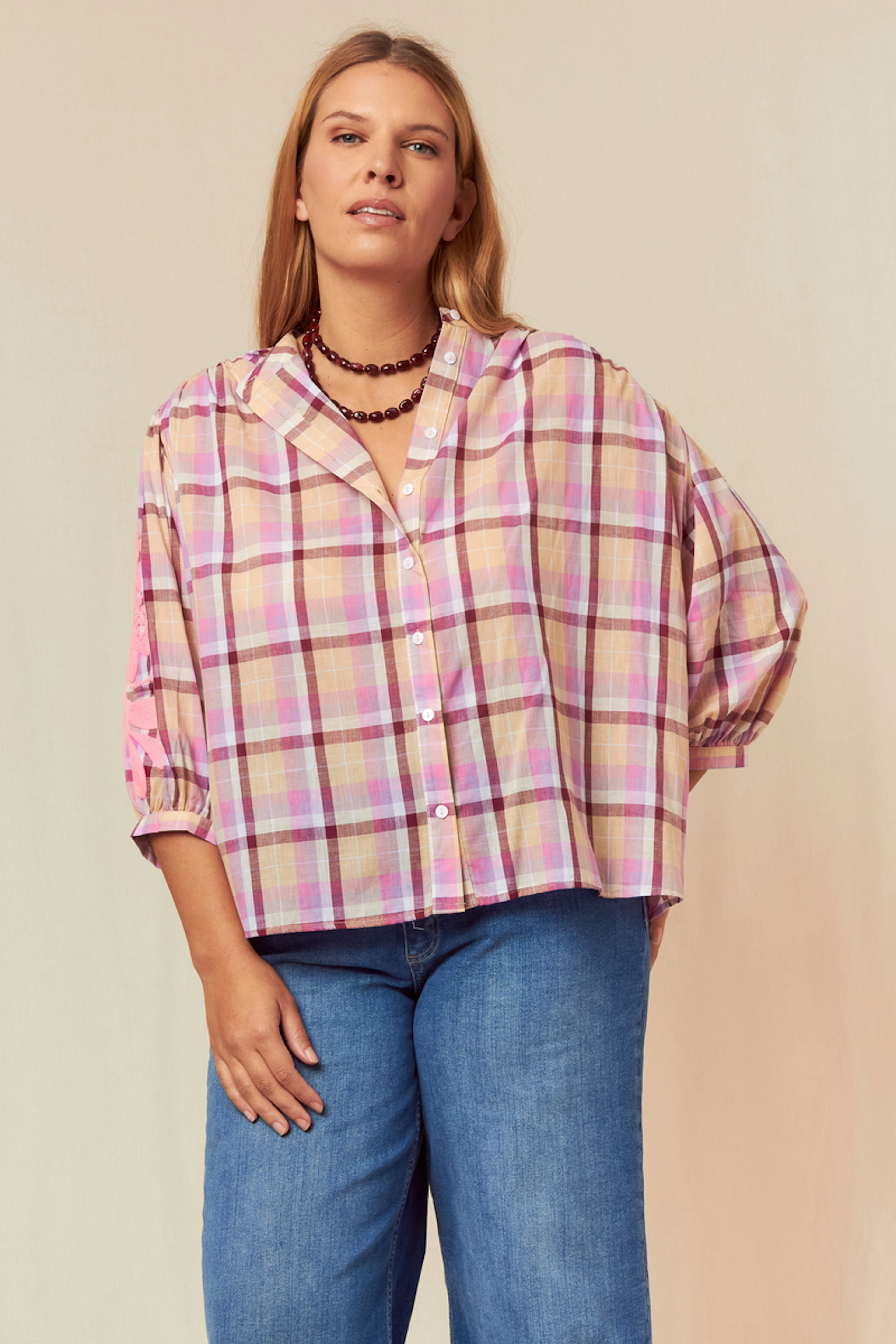 Wear this checkered shirt with corduroy pants and ankle boots for a chic and casual winter look. • 100% cotton shirt • Loose and flowy fit • Long sleeves • Shirt collar • Checkered pattern