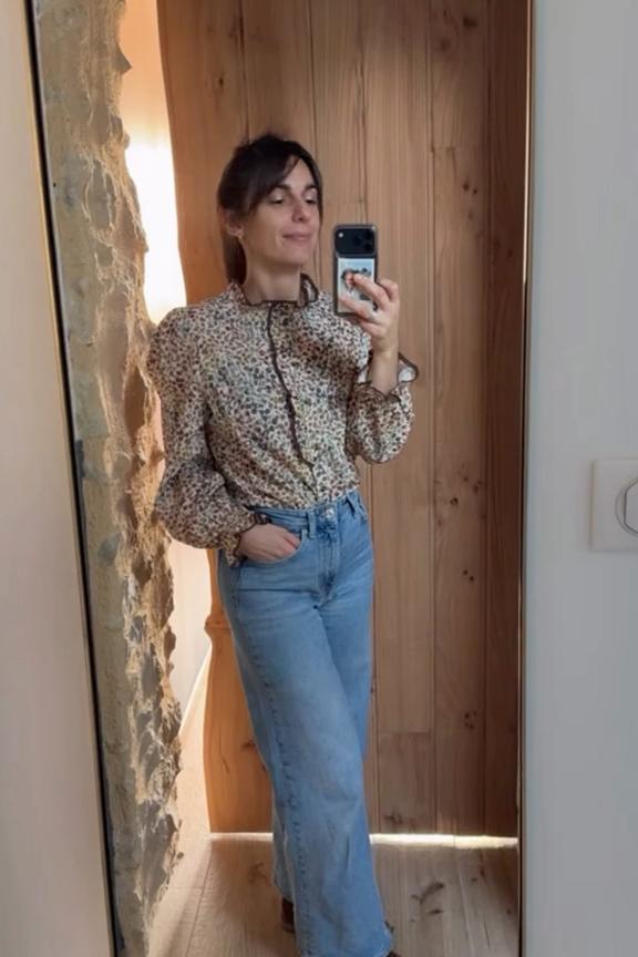 Complete this romantic look with high-waisted jeans and ankle boots for a retro-chic vibe. • Cotton shirt • Straight cut • Ruffled collar • Long sleeves • Floral pattern