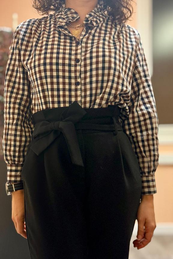 Pair this shirt with tweed pants or jeans for a chic and timeless look, perfect for winter. • Cotton shirt • Fitted cut • Long sleeves • High collar • Plaid pattern