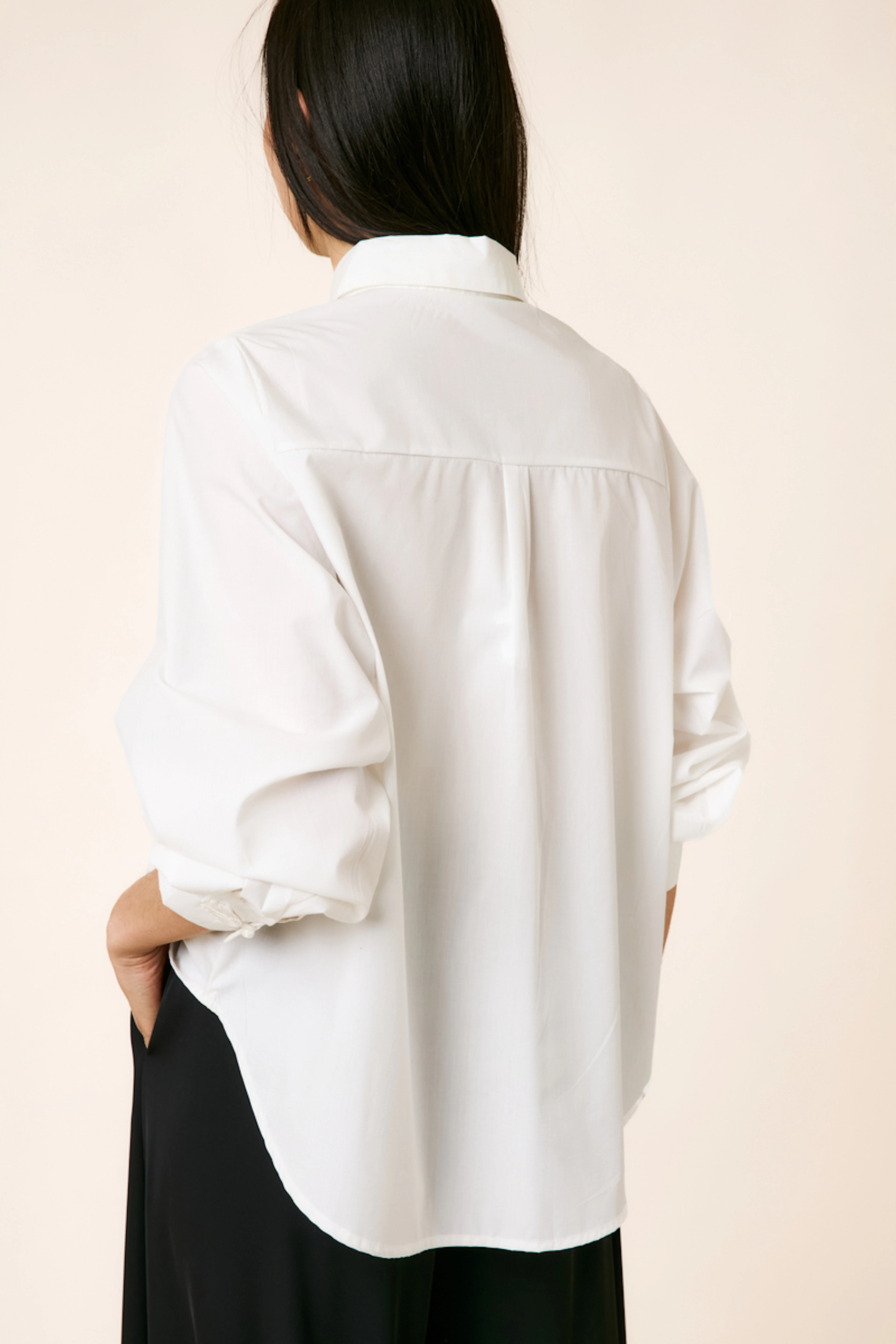 Pair this shirt with fitted pants and loafers for an effortlessly chic summer look. • Long-sleeve shirt • Single closure at the front • Classic collar • Slightly asymmetrical hem • Stylish embroidered details