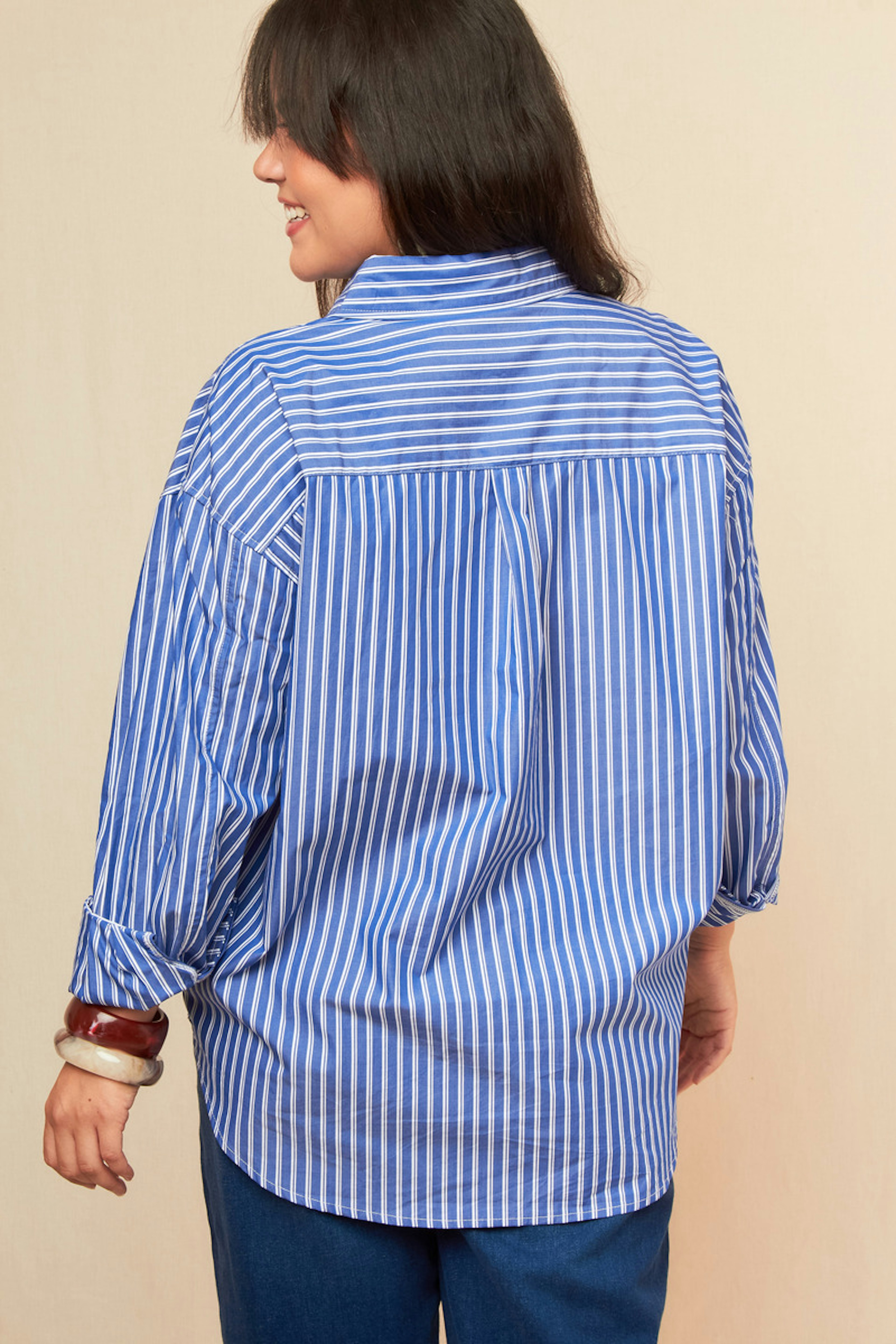 For a chic winter look, pair this striped shirt with white pants and camel ankle boots. Add a cozy wool scarf to complete the outfit. • 100% Cotton Shirt • Relaxed Fit • Long Sleeves • Chest Pocket • Striped Pattern