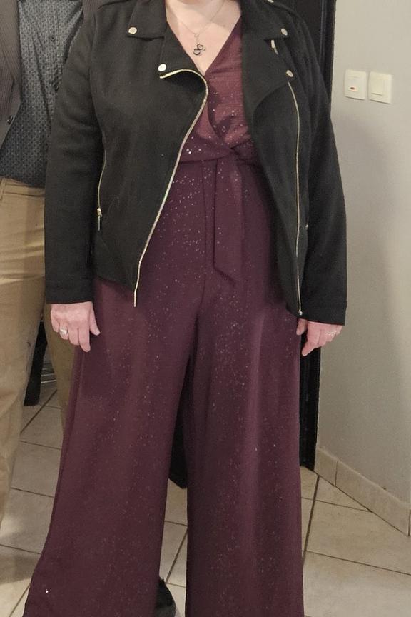 “Very beautiful combination Wow effect But plan for a bra underneath or a tank top because it is impossible to leave the opening like that very low-cut”