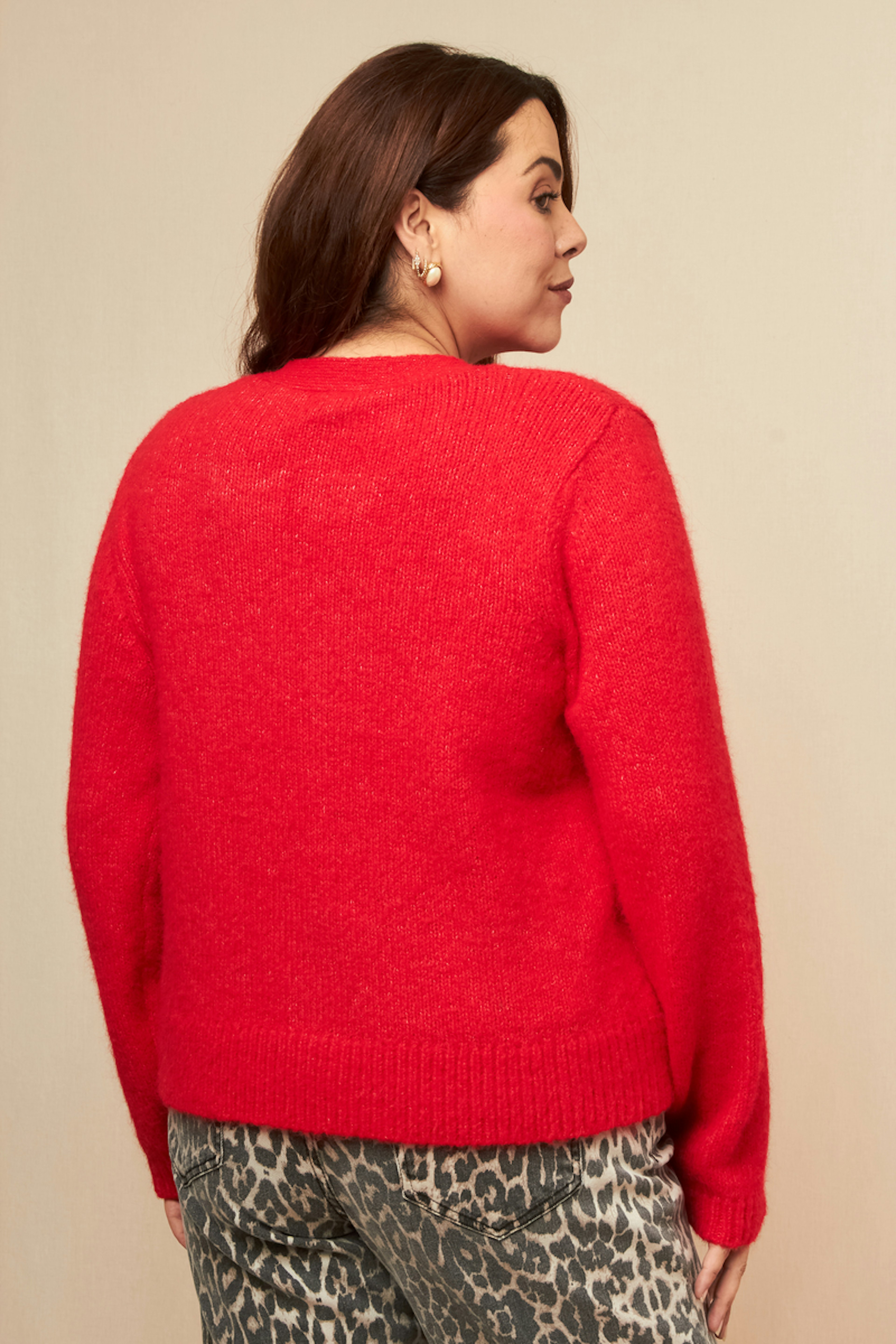 Wear this red vest with high-waisted jeans and ankle boots for a chic look—perfect all year round! • Vest with V-neck • Relaxed loose fit • Comfortable long sleeves • Button closure • Bright color to liven up your outfit