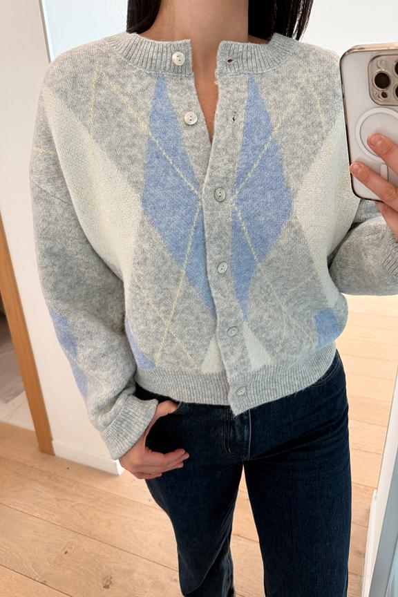 Pair this printed vest with relaxed jeans and ankle boots for a chic and comfy look this winter. • Printed vest • Straight cut • Long sleeves • Button closure • Diamond pattern