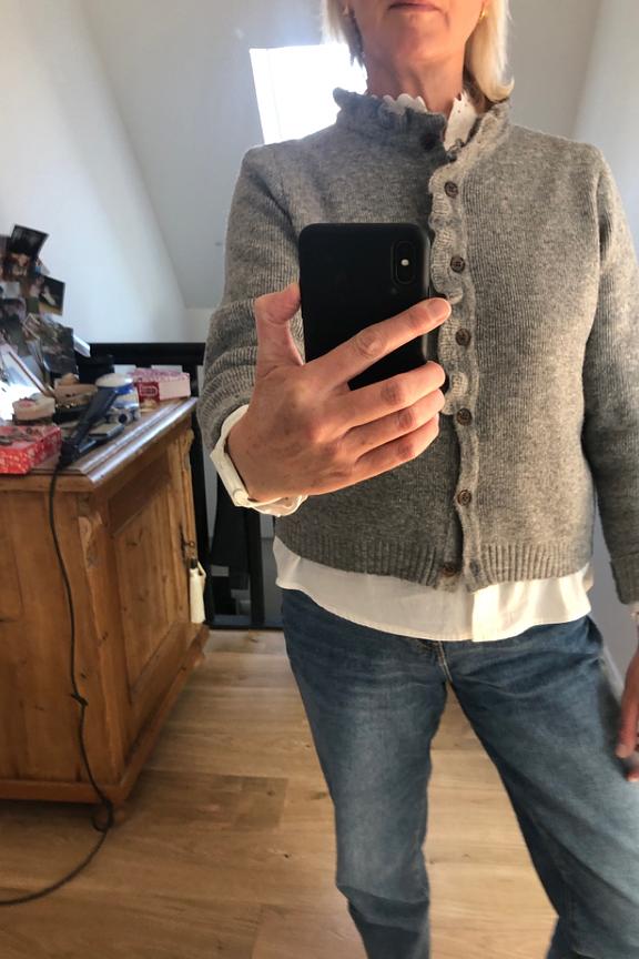 Pair it with black pants and a patterned belt for an elegant touch this winter. • Long sleeve vest • Classic cut • Button closure • Wavy detail on the front • Timeless gray color