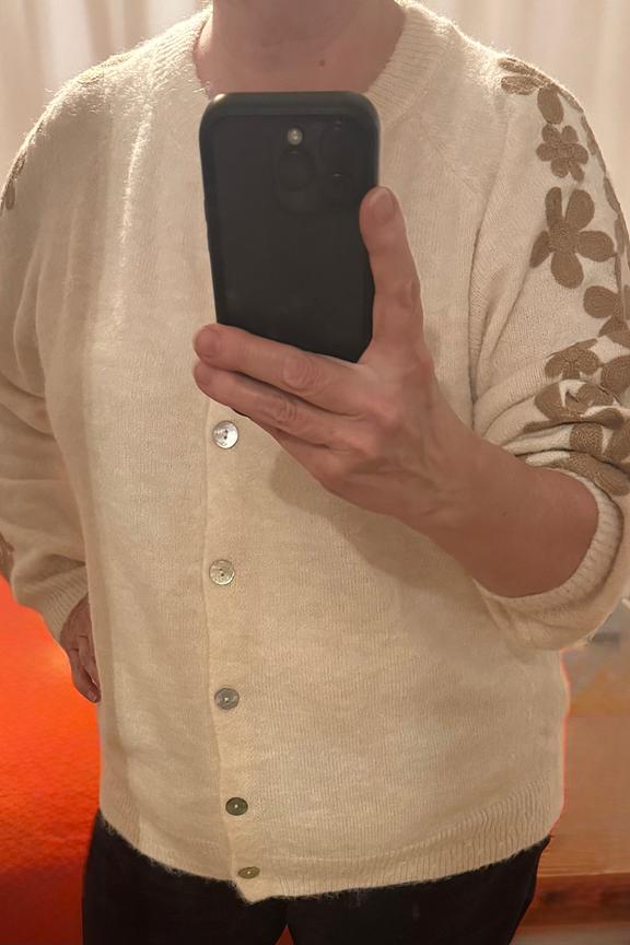 Add a boho touch to your outfit with this vest. Pair it with slim jeans and ankle boots for a cozy look. Perfect to warm up your winter days. • Printed vest • Relaxed fit • Long sleeves • Floral detail • Button closure