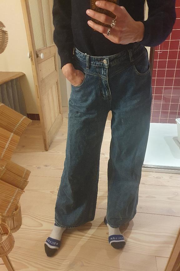Complete your look with a flowy blouse and some heeled sandals for a chic yet laid-back vibe. Perfect for any season. • Wide-leg jeans • Flattering high waist • Relaxed fit for comfort • Casual style • Classic wash