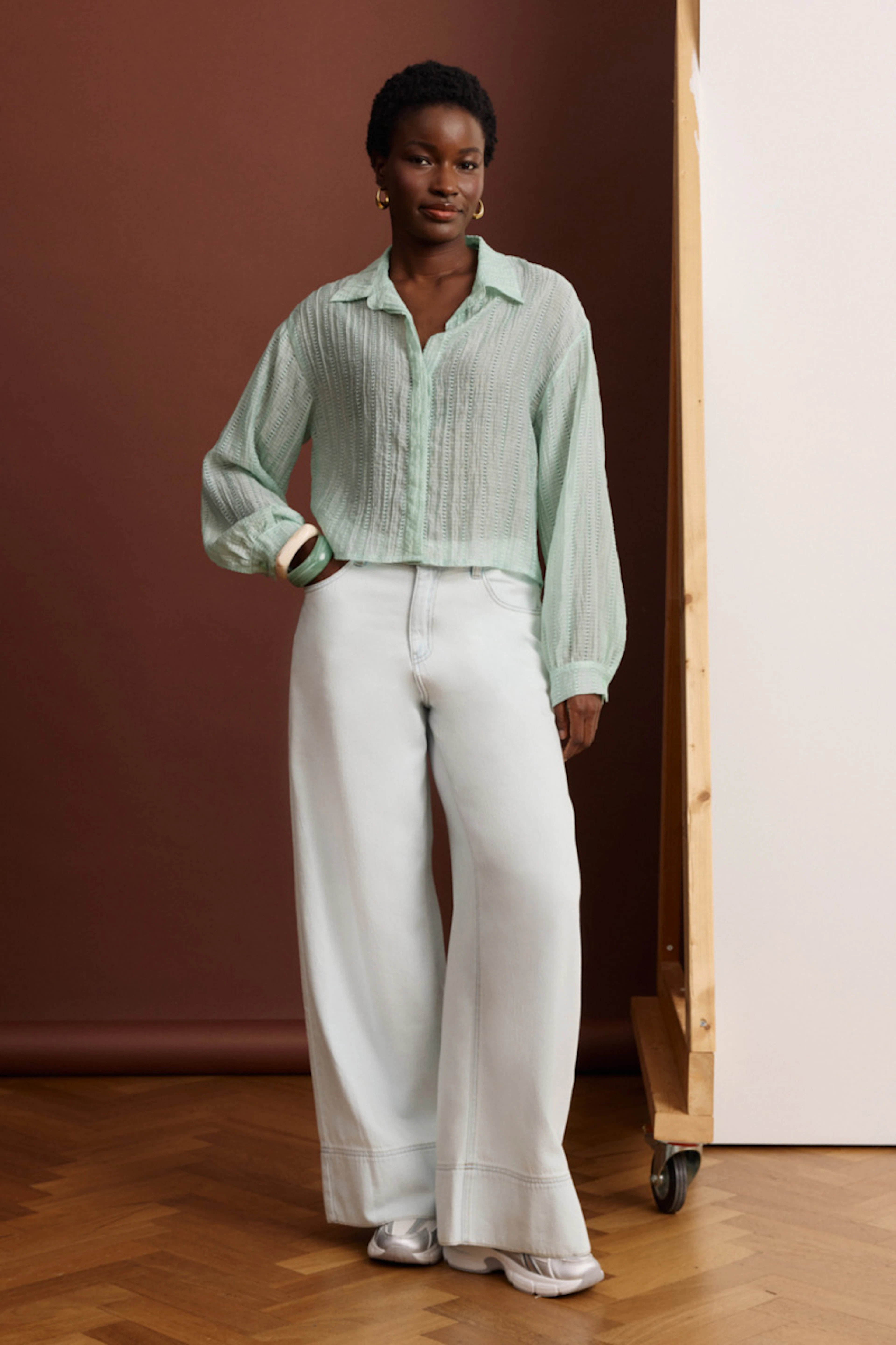 For a chic yet relaxed vibe, pair these jeans with a flowy blouse and elegant loafers. Perfect year-round. • Wide-leg jeans • Loose fit • High waist • Floor length • Top stitching details
