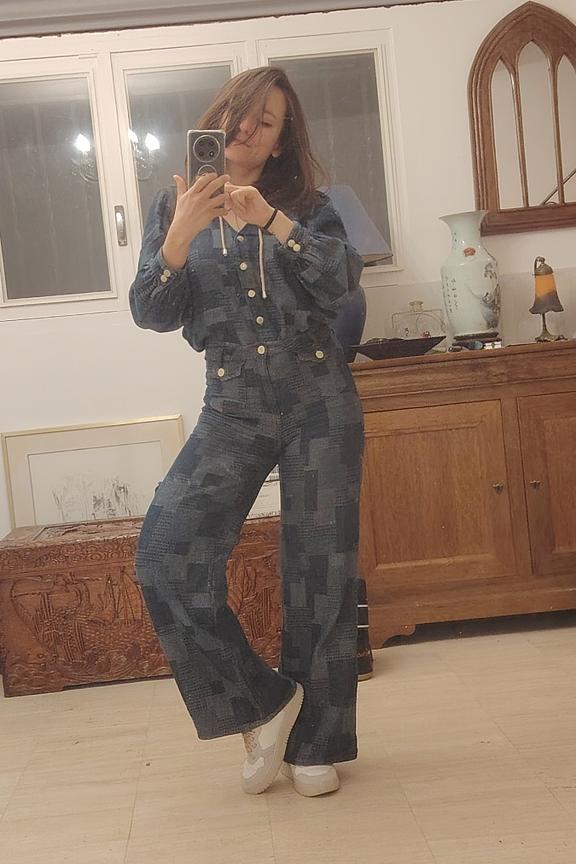 Pair these jeans with a fitted pull and ankle boots for a chic look. Perfect for any season. • Patchwork jeans • Loose and flowy fit • Flattering high waist • Long hems • Soft cotton texture
