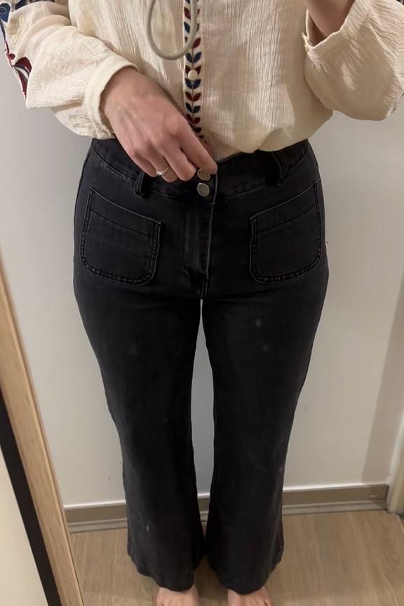 Opt for these elegant black jeans with a colorful pull for a vibrant contrast. Add leather ankle boots for a chic vibe, perfect for any occasion. • Black jeans • Straight cut • Mid-rise waist • Regular length • Light stretch comfort