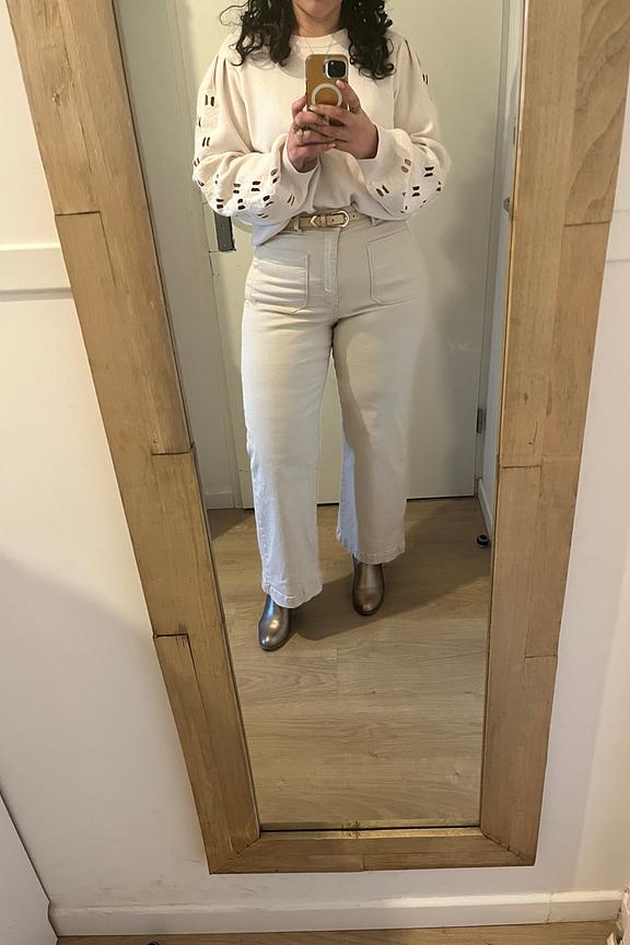 “The cut is really great and the jeans are super comfortable, the size is tight, ideal for hourglass shape”