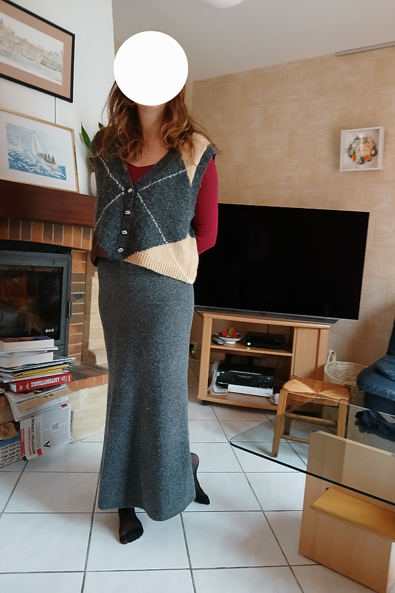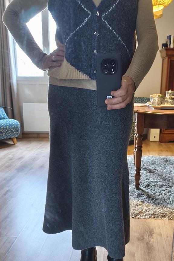 “Very pretty skirt and warm for winter, I took it with the matching cardigan and a white blouse, which helped hide the postpartum belly. Perfect!”