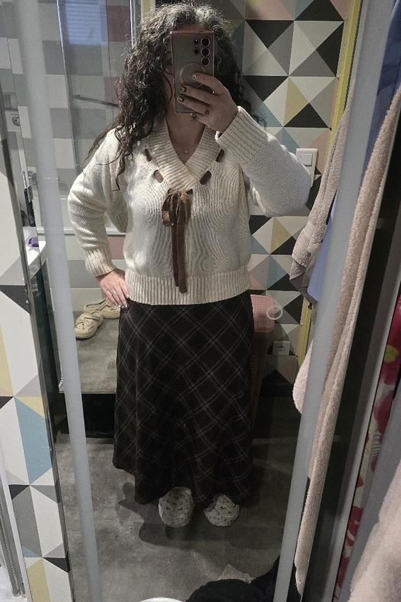 Pair this long skirt with a cozy pull and ankle boots for a chic winter look. Add a long wool coat for maximum comfort. • Long skirt • Flared fit • Flattering high waist • Checked print • Discreet zip closure
