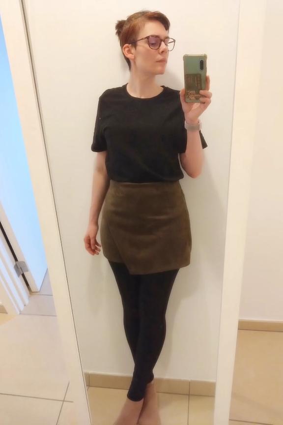 Choose a chic look with a turtleneck pull and leather ankle boots, great for winter days. • Short skirt • Wrap style • High waist • Soft finish • Button closure