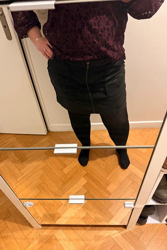 “This skirt is super cute. I haven't decide if I'm keeping or going to trade it in for a size bigger as the 38 fit really well but it was tight to sit in.”