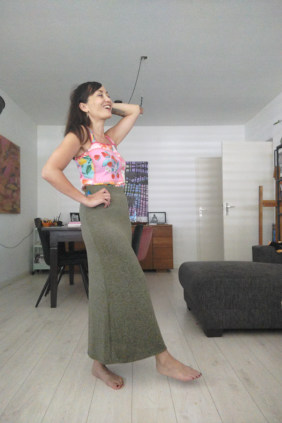 Pair this skirt with a light white top and leather sandals for a refreshing summer look. Perfect for sunny days. • Long skirt • Straight cut • High waist • Flowing fabric • Elegant khaki shade
