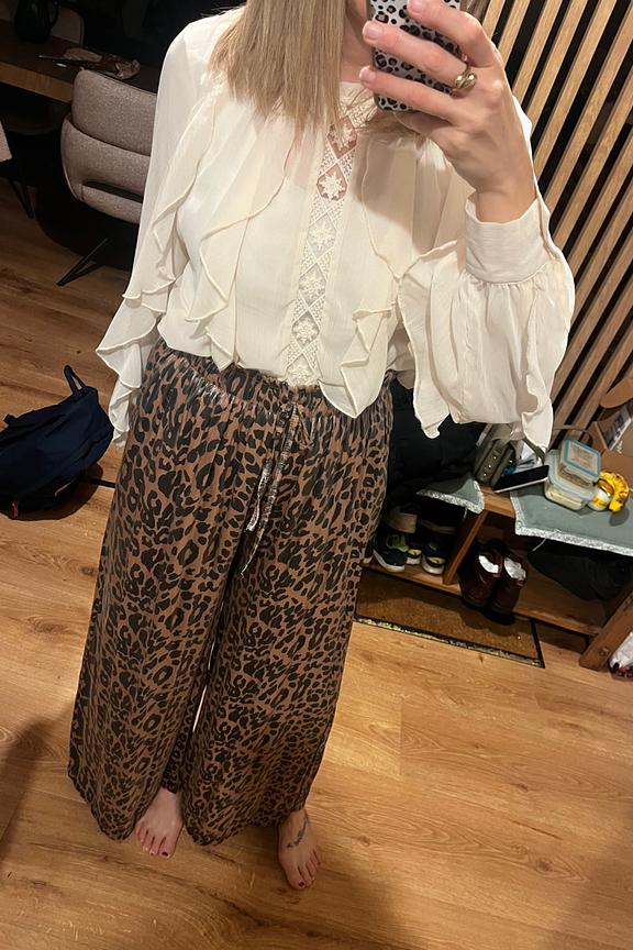 Add a touch of wild glamour to your look with these leopard print pants. Wear them with a plain top and sneakers for a casual and bold look. • Loose pants • Wide fit • Elastic waist • Leopard print • Full length