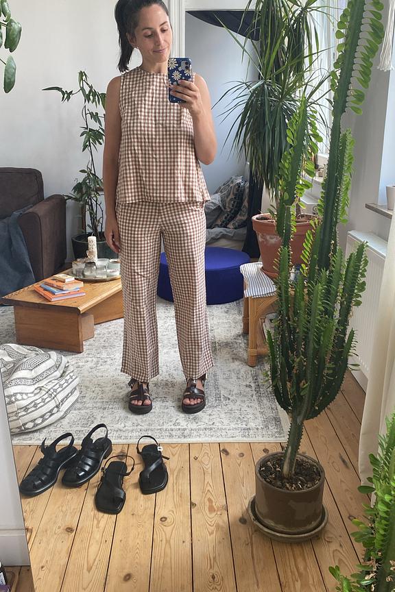 “The pants are very cute but if you have a bit too much shape ... it doesn't fit you. It fits a bit oddly”