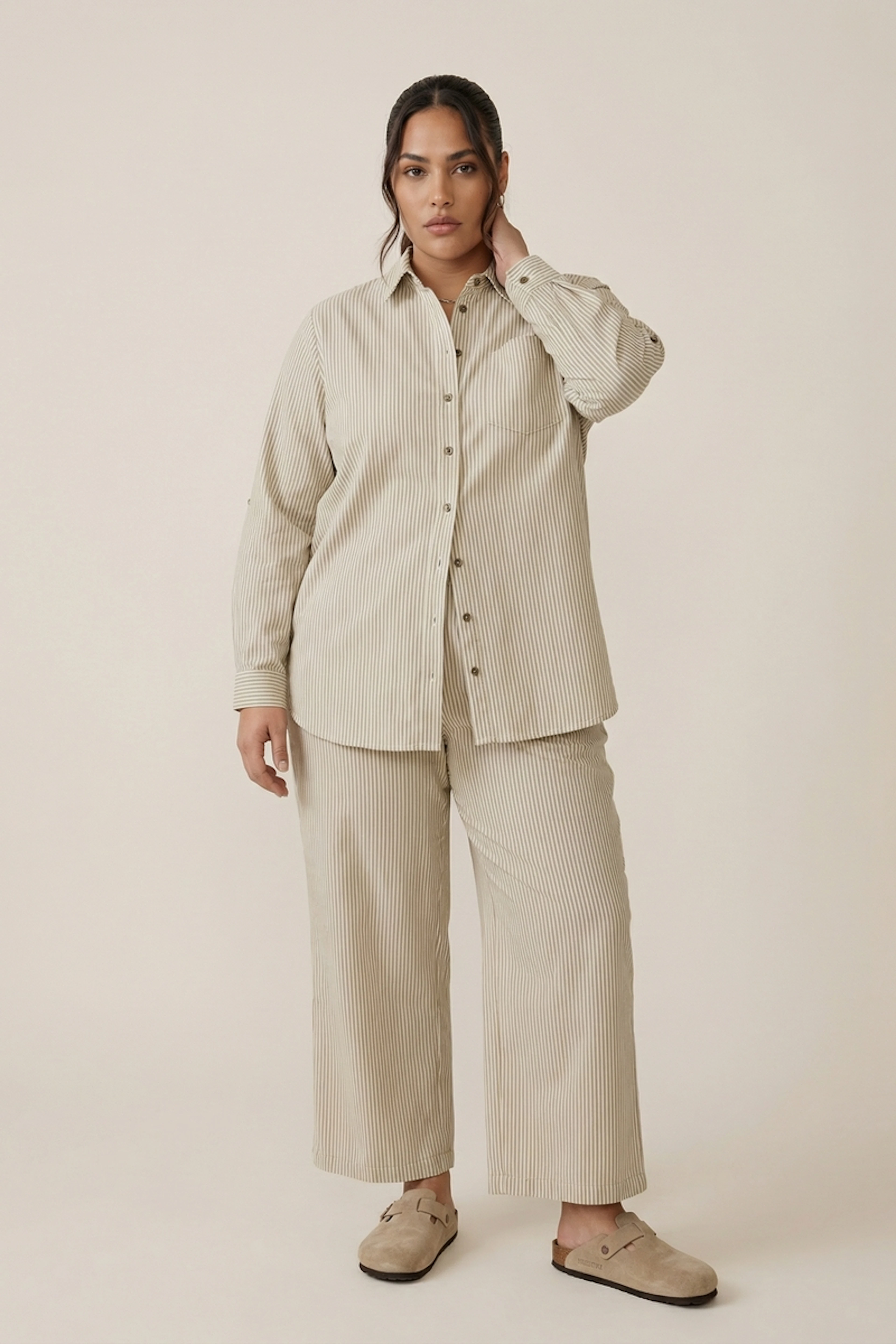 Pair this pant with a white tank top and some minimalist sandals for a laid-back summer vibe. • Cotton pant • Relaxed and comfy fit • Elastic waistband • Wide legs • Striped pattern