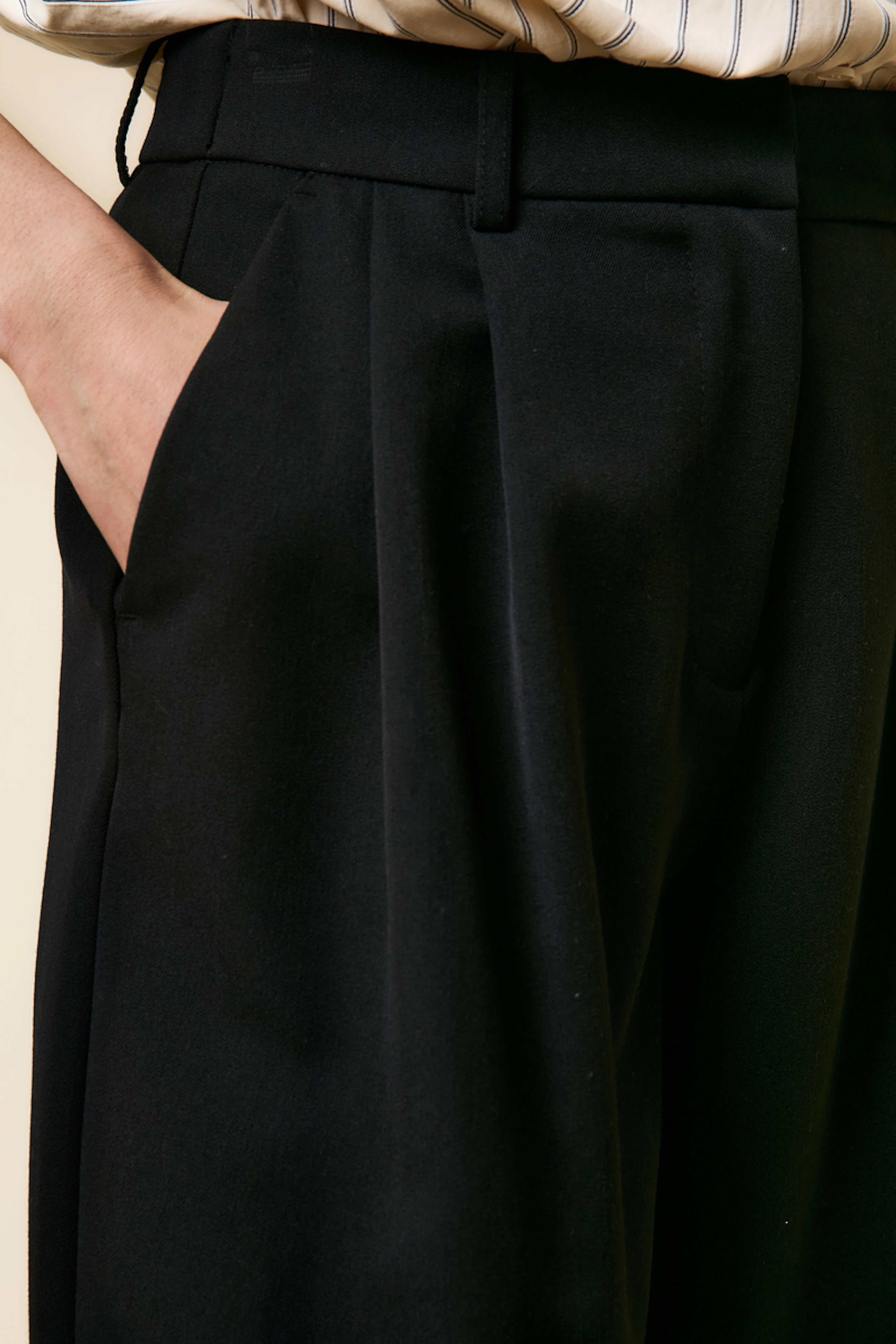 Opt for a lightweight silk blouse and loafers for a chic yet casual look. Perfect all year round. • Loose pants • Wide and flowing cut • High waist • Elasticated at the ankles • Stylish black