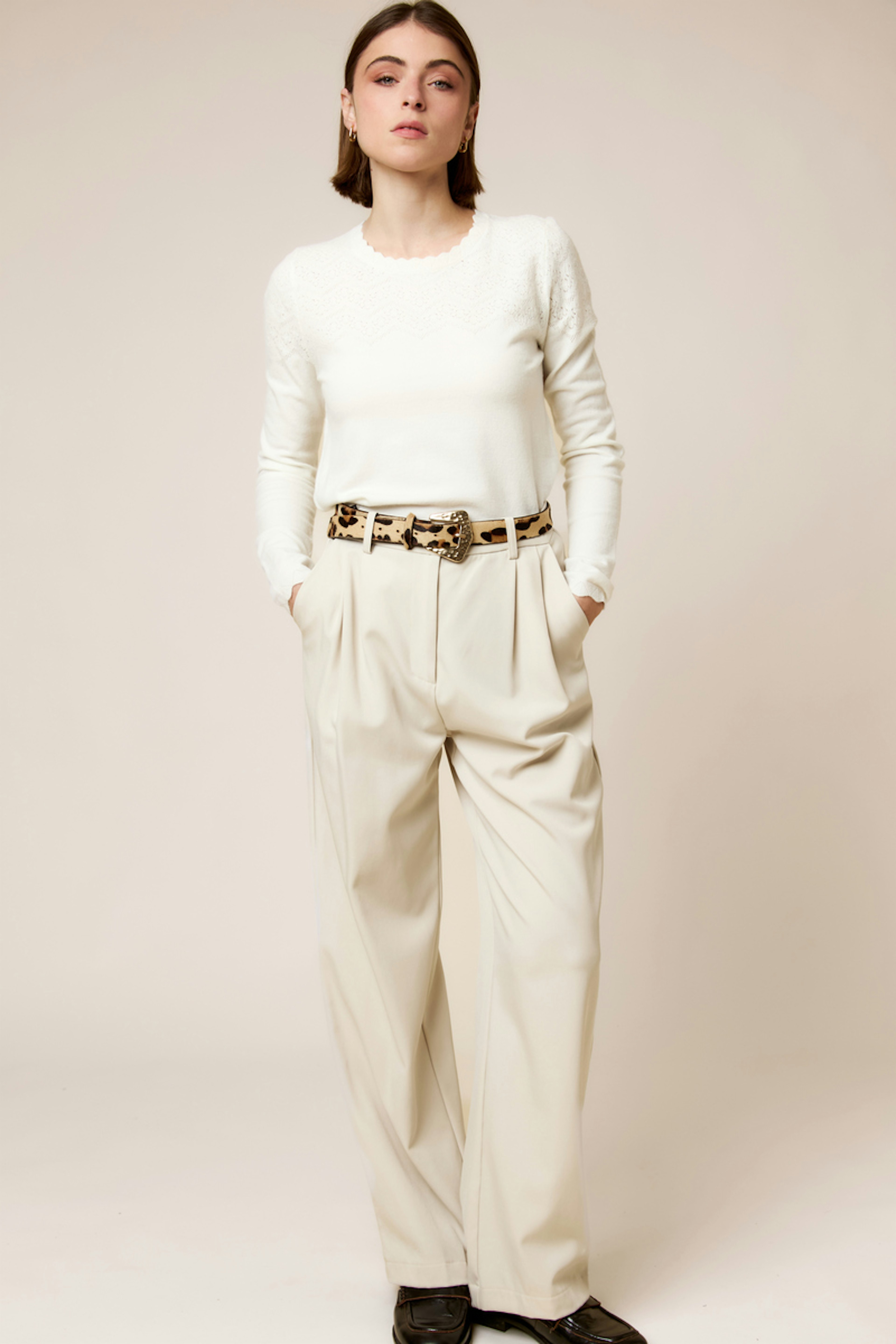 Pair these beige trousers with a colorful top for a chic and casual look. Ideal with sneakers or heels, they adapt to all occasions.<br><br>• Wide trousers<br>• Loose and comfortable fit<br>• Flattering high waist<br>• Elegant front pleats<br>• Concealed zipper closure
